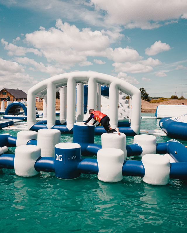 A skip, hop and a jump were all kept in mind when designing this balance testing obstacle piece. The Aquaglide I-Hop is designed to challenge even the most skilled park visitors. Featuring non slip surfaces on all jump steps, the Aquaglide I-Hop is sure to be a hit. Connect to other Aquaglide products to create course tracks and circuits. Ideal for shallow water and pool applications.