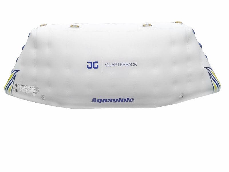 The Aquaglide Quarterback Corner adds diversity and play value to Aquaparks designed in a ring. With two novice climbing walls, one mini-drop, and a dedicated jump/blast zone, the Quarterback is a user- favorite destination that accommodates up to five users. The Quarterback perfectly fits the Aquaglide Ring Series layout corners and connects on three sides using Vario Lock straps.