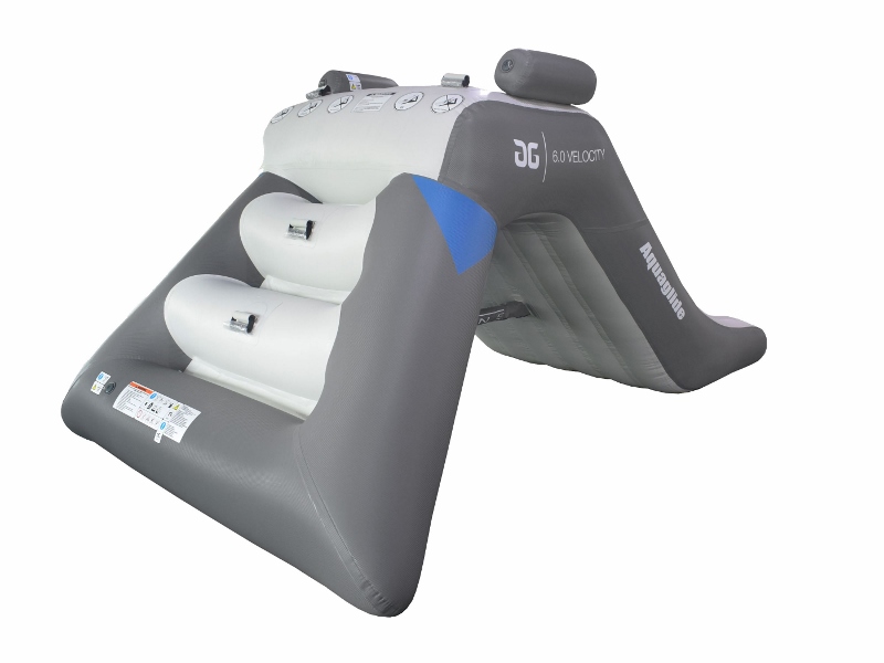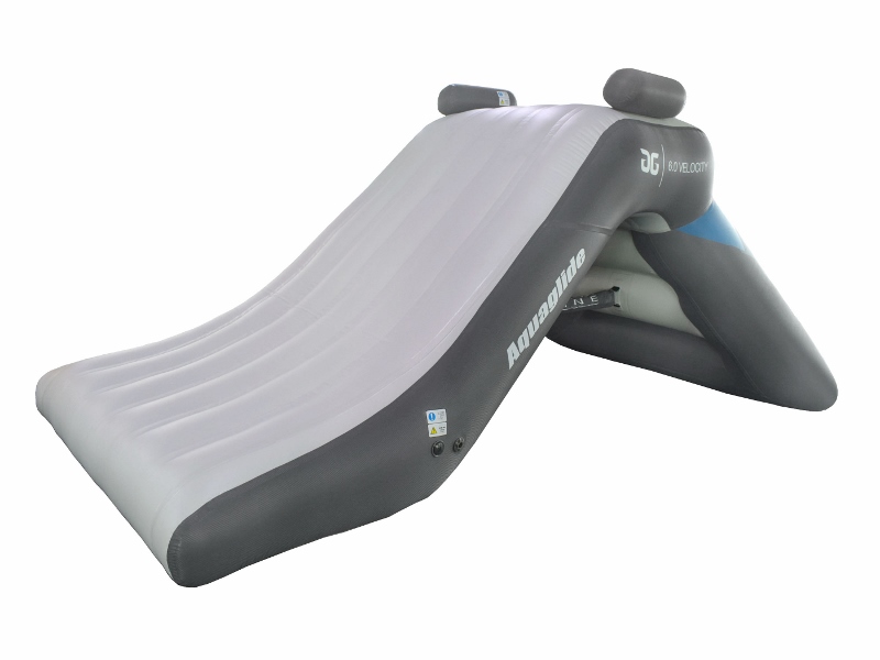 The Aquaglide Velocity 6 inflatable water slide brings great sliding fun to the waterfront. A six foot high climbing ladder and an exhilarating zero-entry water slide will accommodate up to three participants at a time. Bring a thrill to your waterfront for any age group. Kids will spend hours enjoying the thrill of Velocity 6.0.