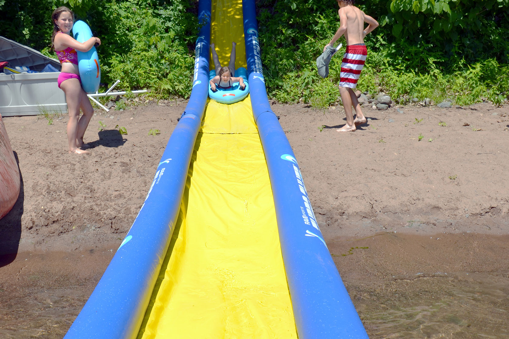 The Rave Turbo Chute Lake Package includes everything you need to create a thrilling 66′ long water slide slip and slide at your cottage, camp or resort! The 20′ modular sections make it easy for you to make the slip and slide as long as you need it, and are compact and lightweight for easy set-up, take down and storage! The 6′ Starter Mat provides padding at the start of your Turbo Chute water slide for extra rider safety. Chute down the slide and skim across the lake on the Turbo Sled! Make multiple lanes for racing events!